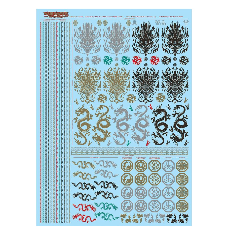 The kit comprises 128 plastic components, 1x Citadel 100mm Square Base, 1x Citadel 25mm Square Base, 1x Citadel Large Flying Stem, and 1x Sky Lantern Transfer Sheet containing 115 high-quality waterslide transfers to decorate your miniatures.
