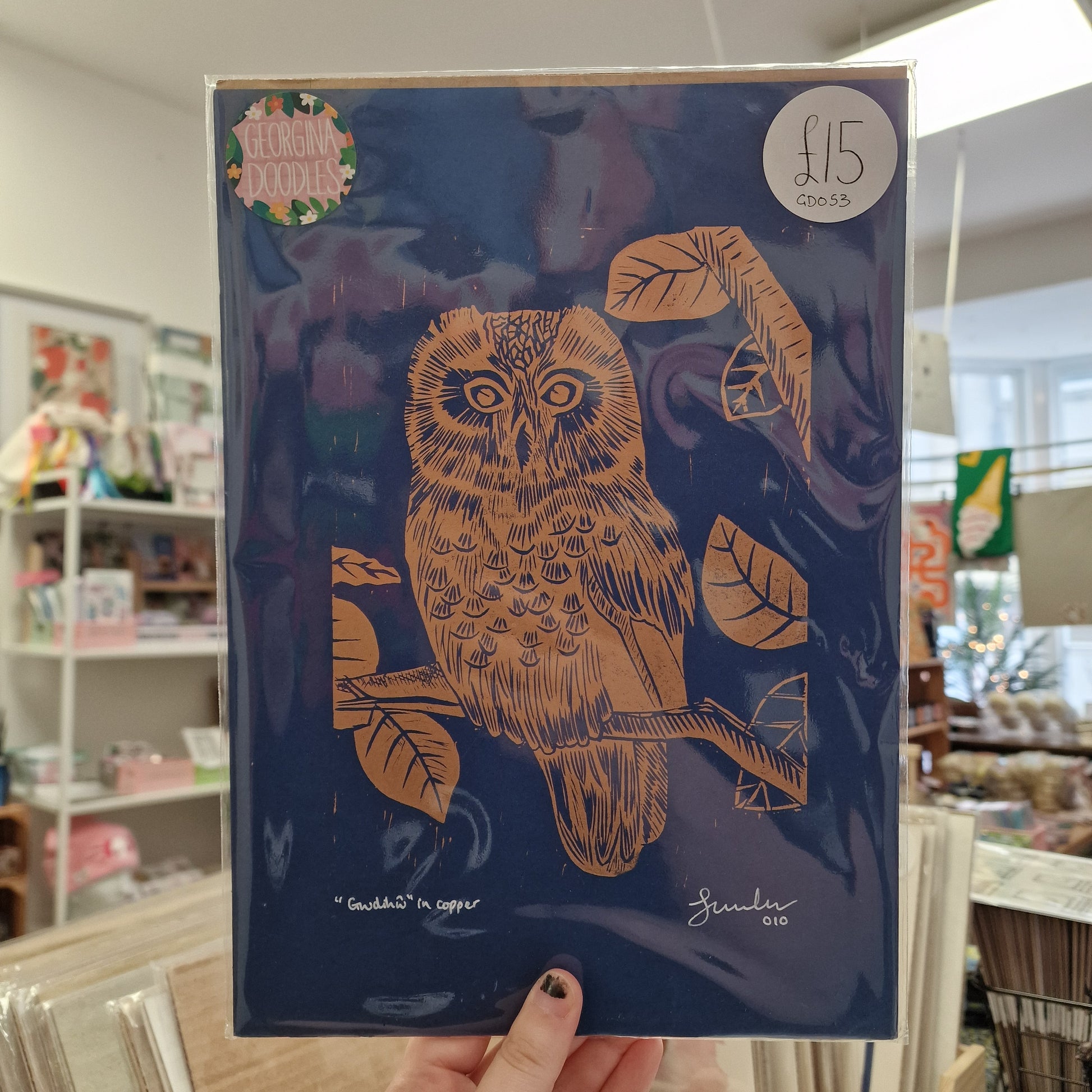 Gwdihw (Owl) In Copper A4 Lino Print